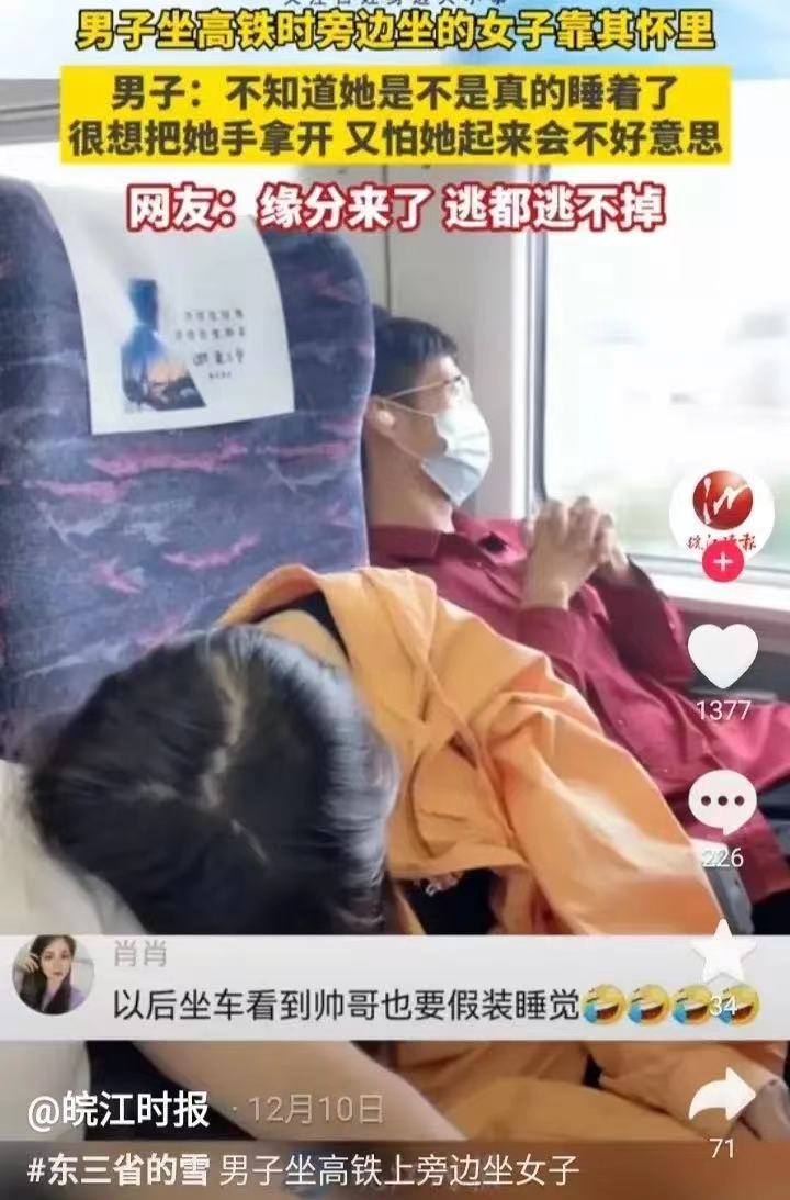 笑不活了!男子坐高铁时陌生女子靠其怀里,我无奈地笑死在评论区
