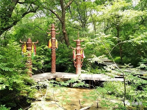 顺着台阶和木栈道深入沟底原始森林,但见古木参天,百草葱茏,万千泉眼南来北往,涓涓细流汇成湍湍清流,曲水通幽,蜿蜒而去。大青沟是天然动植物宝库,素有"沙漠绿洲"之美誉。