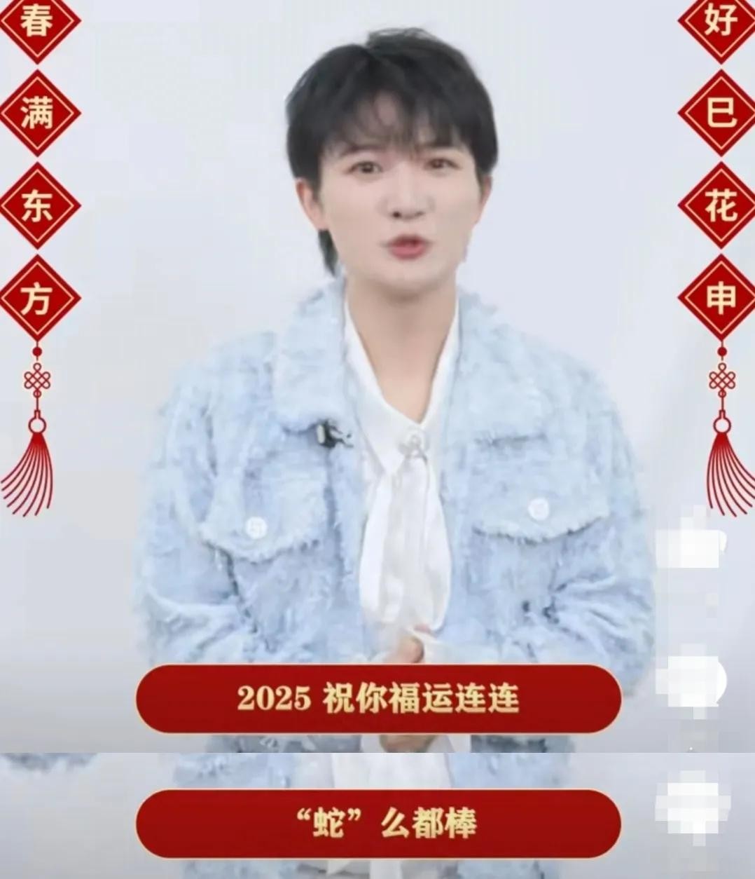 比如周深,他出现在东方卫视春晚的屏幕上。他说“2025祝你福运连连,“蛇”么都棒。”
