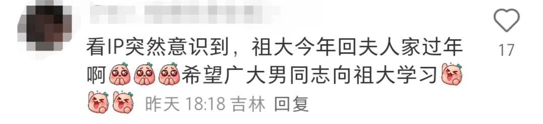 对此,有网友投来羡慕的眼神,并表示他今年回刘天池家过年,希望广大男同志向他学习。