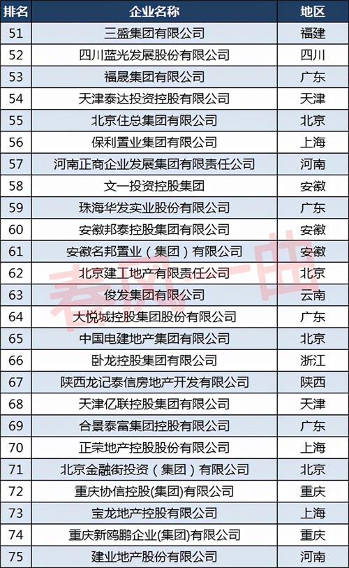 北京江南投资集团有限公司排名第50位,三盛集团有限公司排名第51位;