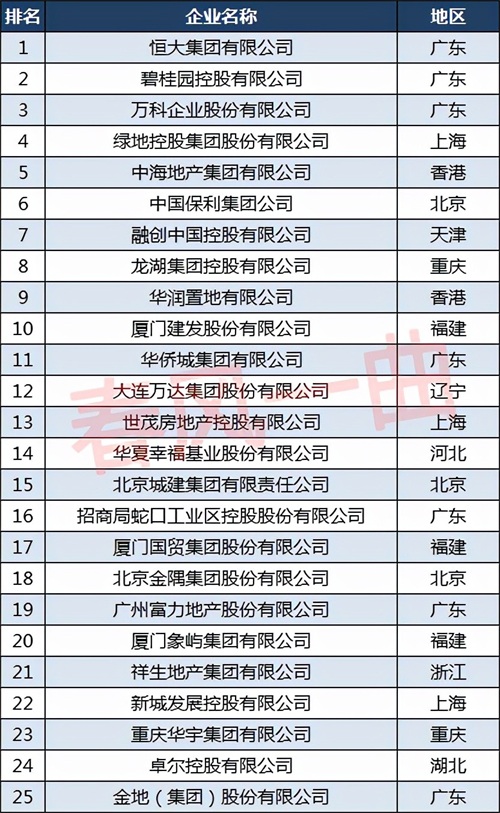 2021中国房地产业综合实力百强榜排名前十的企业为:恒大集团、碧桂园、万科、绿地控股集团、中海地产集团、中国保利集团、融创中国、龙湖集团、华润置地、厦门建发