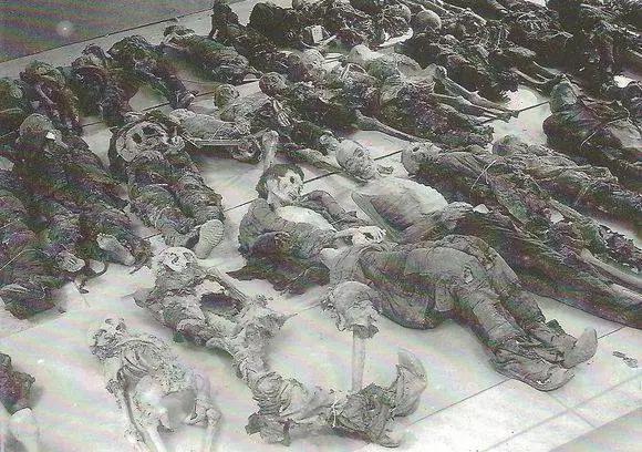 由于特殊的地理、气温等条件,很多尸体并没有完全腐烂,一些保存较好的干尸,甚至还保留着临死前痛苦挣扎的惨状。面对二百具左右的骨肉同胞的尸体,在一片阴森恐怖的气氛中,有些年岁稍大,有心脏病的人,精神上根本承受不了。