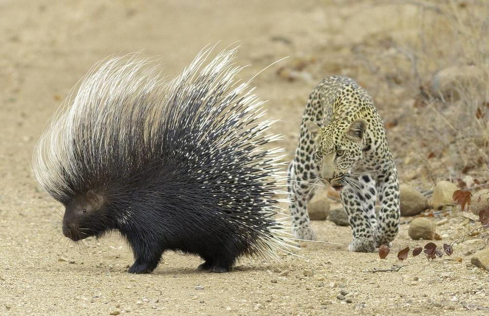 小非洲豹与开普敦豪猪