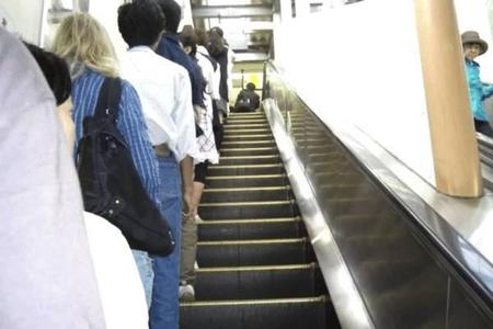4、日本人很注重电梯礼仪,乘坐电梯时需要全部靠左,把右边的空间留给有急事的人。