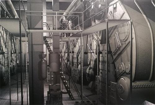 胡德号强大的推进系统根基是24台亚罗式小管锅炉,布置在船舯部前后相连的4座锅炉室里。它们比相同重量的大管型可以多提供30%的动力。每台宽17英尺,高16.5英尺,深13英尺,8台喷油机向燃烧室供油。锅炉上方的隔间里有6台90英寸进气扇进行强制通风,以达到特定炉温。从引擎室的4台主给水箱里供应的水受热后,产生的饱和蒸汽通过4条19英寸管道导入后方引擎室,向齿轮减速汽轮机提供动力。每套动力装置都和一条桨轴相连,轴上的螺旋桨推动军舰航行。