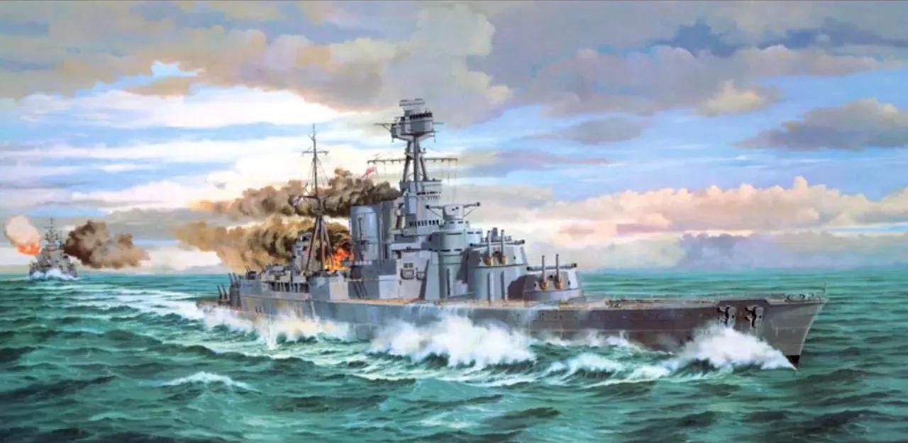 胡德号建成时是当时世界上最大的战舰。她和伊丽莎白女王级战列舰一样采用了15英寸381mm舰炮,6具533mm鱼雷发射管,另外装备12门5.5英寸140mm副炮,防空火力也逐年增强。主炮重880吨,最大仰角30度,穿甲弹重量879千克,最大射程达27600米。在装甲防护方面,主装甲带305mm,从“A”炮塔一直覆盖到“Y”炮塔,主装甲带后面有127mm的横向装甲板,构成一个完整的装甲堡垒。