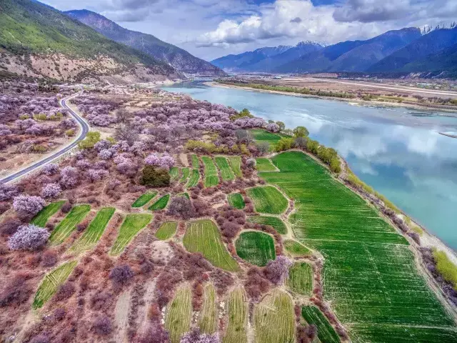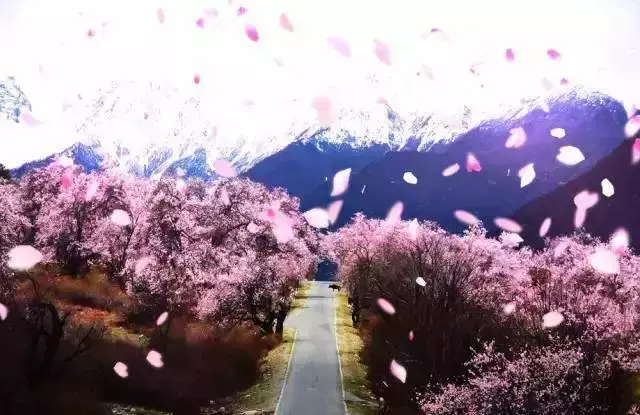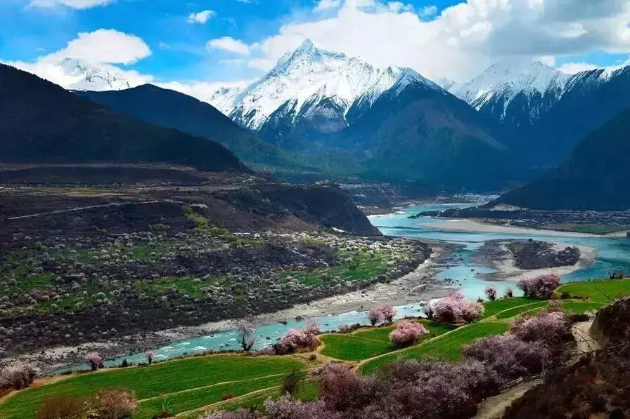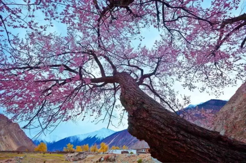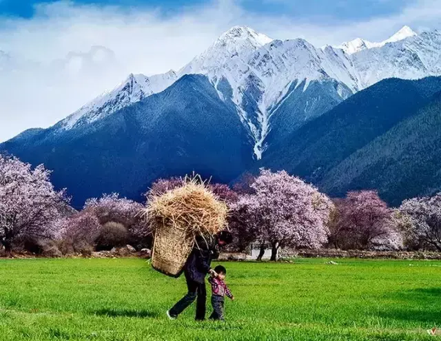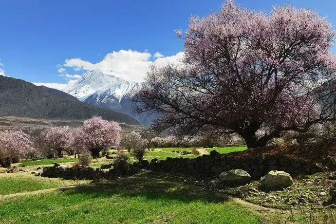 每年的二月、三月,当连绵起伏的群山还披着厚厚的白色雪衣,林芝漫山遍野的桃花开始铺满山坡,绵延至河谷,在雪山冰川的映衬之下怒放着野性的壮美。