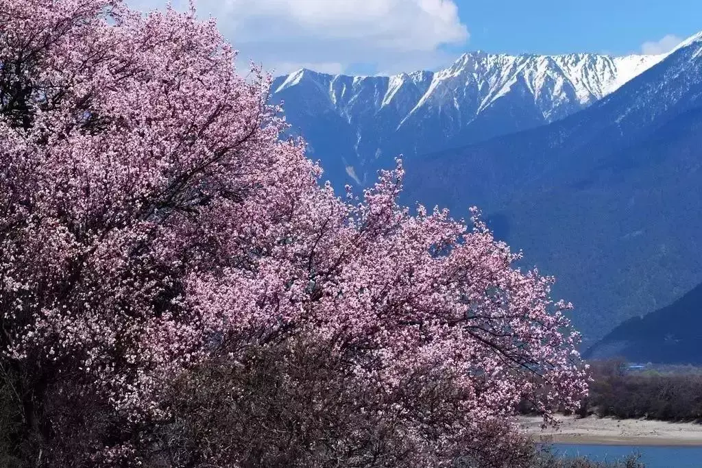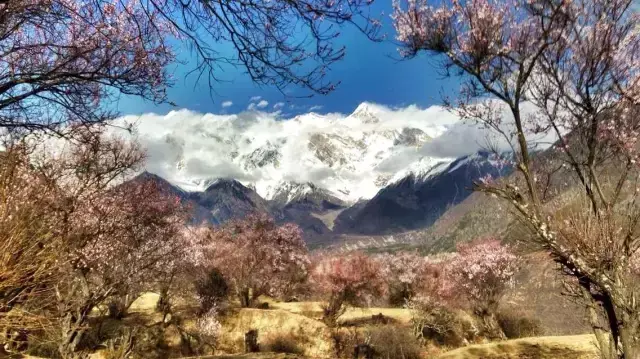江南没有雪山,瑞士没有桃花,或许只有在林芝,才能尽享桃花掩映下的雪山之景。