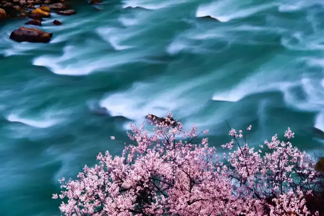 这里的桃花,没有人为的种植,也没有刻意的修剪,悄悄的在无人知晓的岁月里扎根于雅鲁藏江的岸边,静静的在这一片雪域高原绽放出一整个灿若云霞的春天。