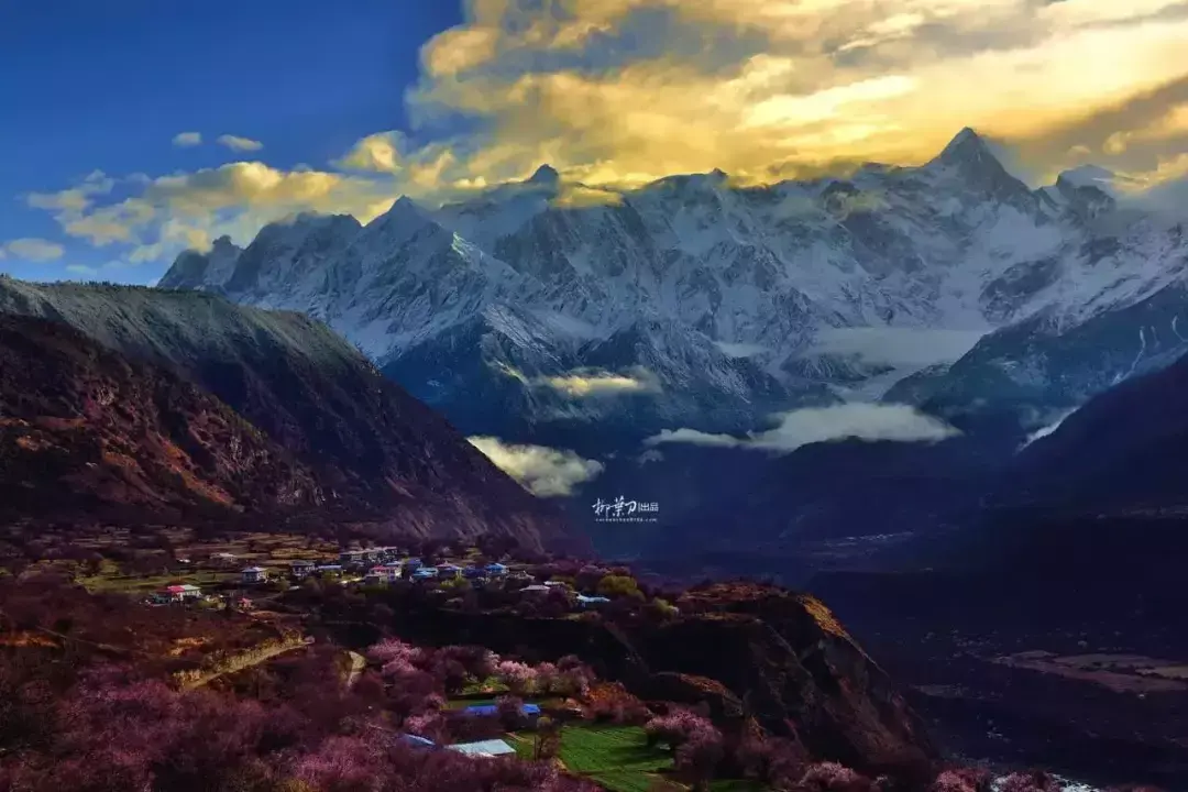 在桃花盛开的田野间,远望南迦巴瓦的山峰以及变幻莫停的云雾,等到夕阳西下,金色的光芒慢慢升起在南迦巴瓦之上,这一刻的林芝会让你终生难忘。