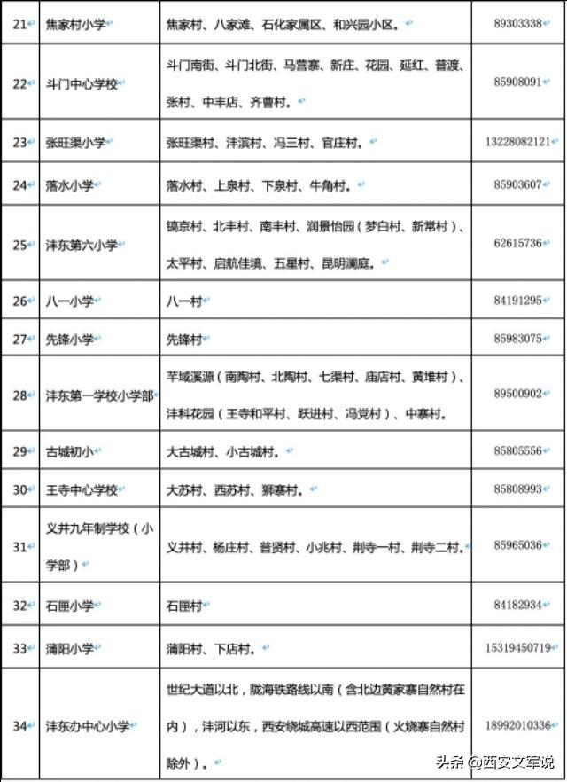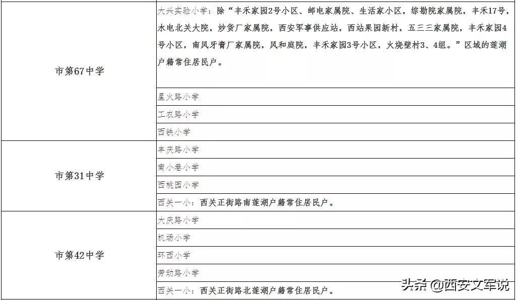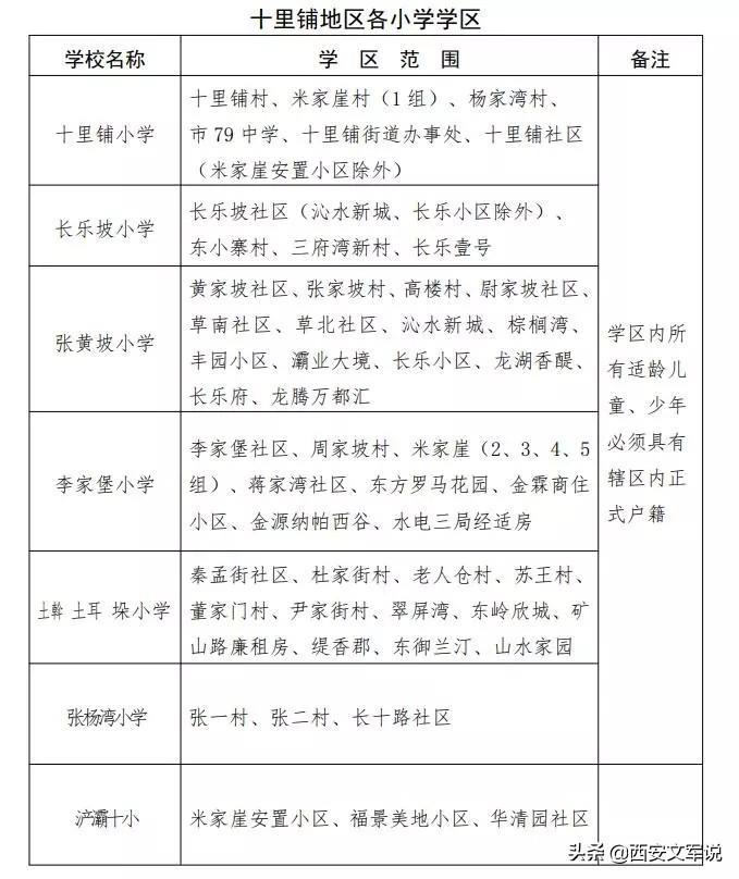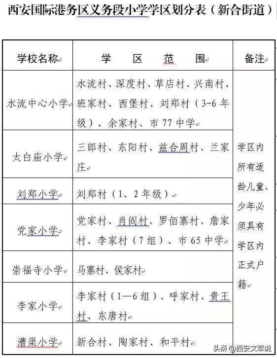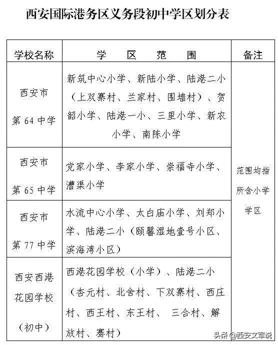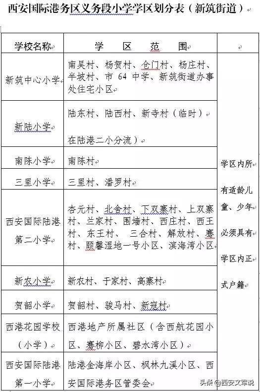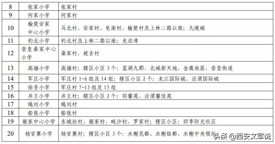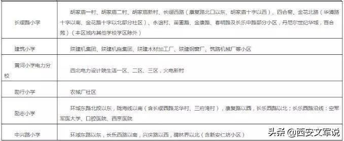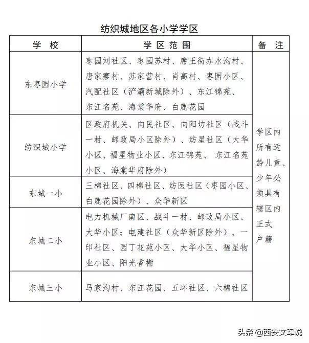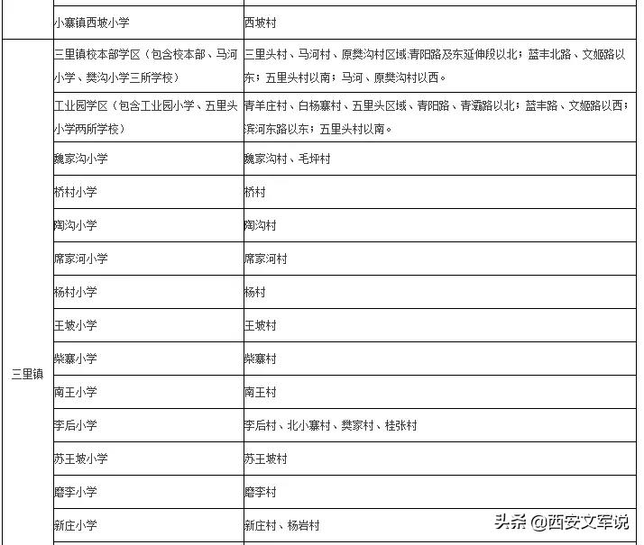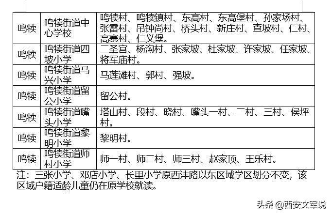 注:以上各学校学区范围是基本描述,若个别区域内入学学生数超过学校容纳量,开发区管理的学校由开发区根据实际情况统筹协调安排,雁塔区管理的学校由雁塔区教育局根据实际情况统筹协调安排。