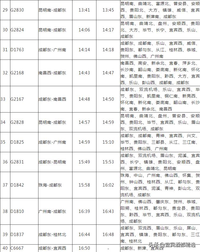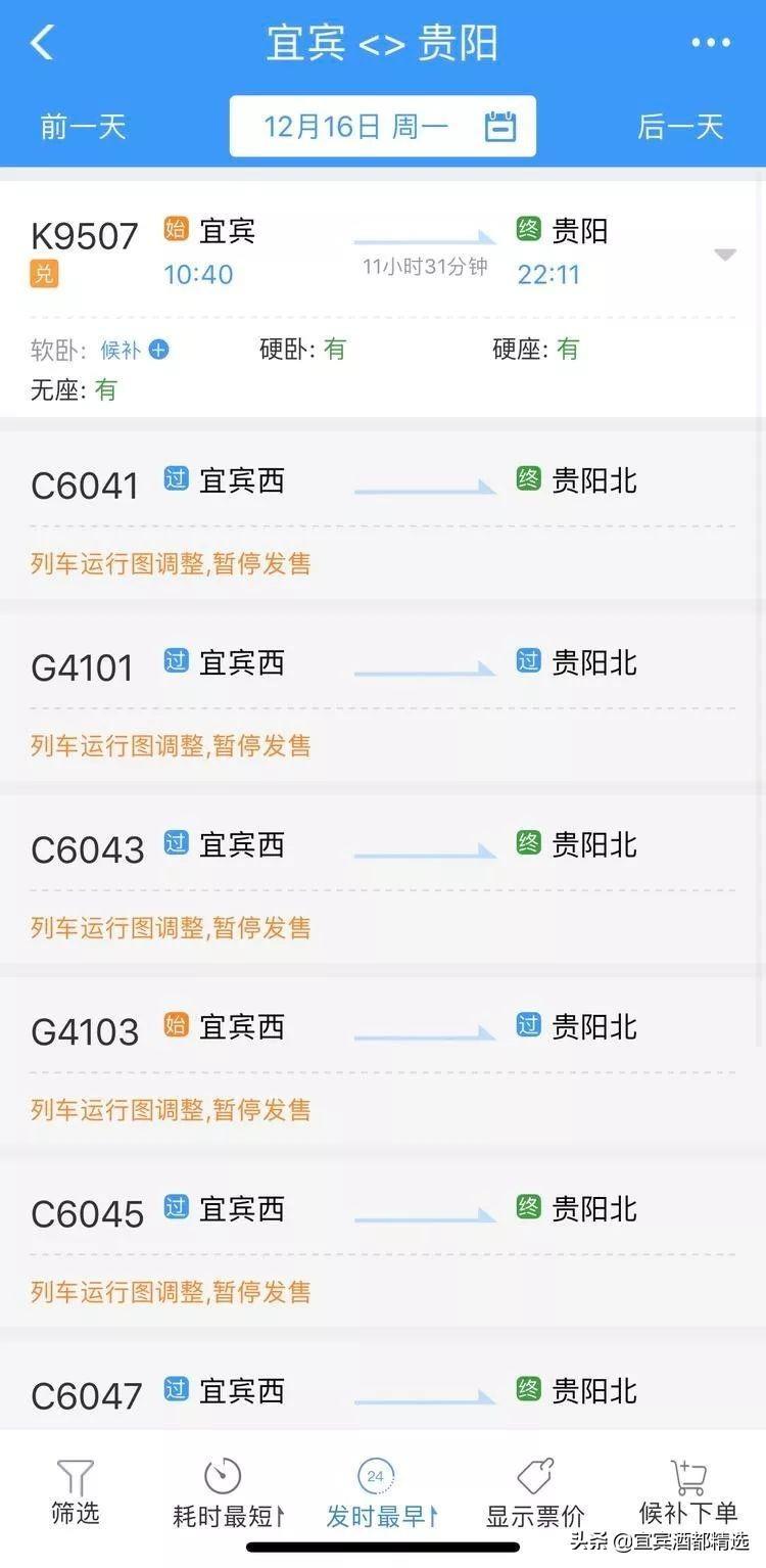 12月16日宜宾到贵阳、宜宾到昆明的车次