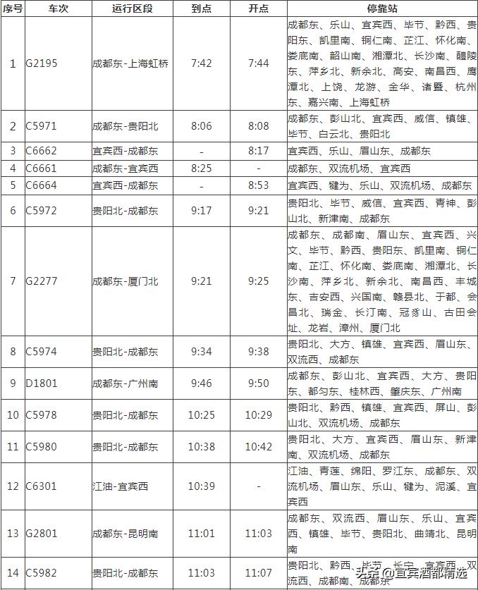 成贵高铁预计12月16号全线通车,宜宾西站每天73班!列车时刻表