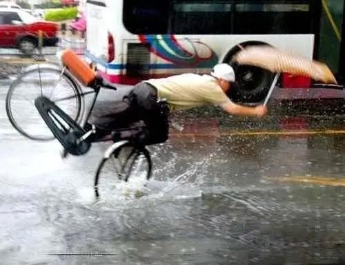 10、雨天骑自行车被摔倒瞬间。
