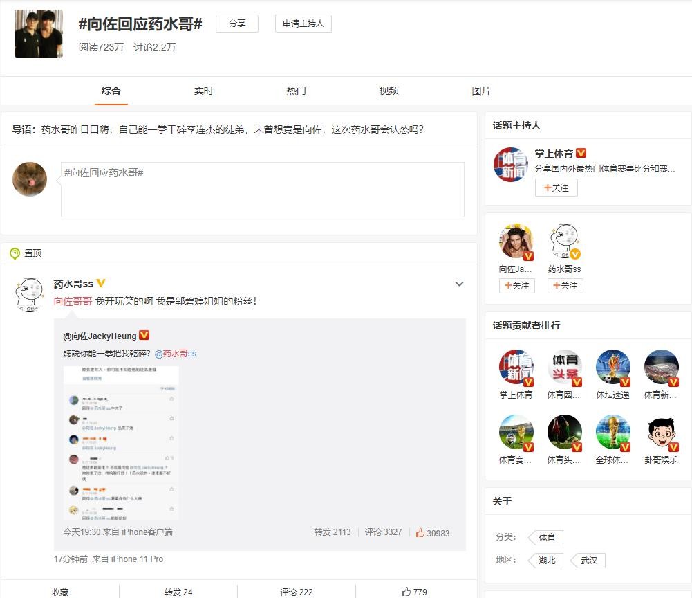 出大事了!药水哥发微博称要干碎向佐,当事人竟回应了药水哥?