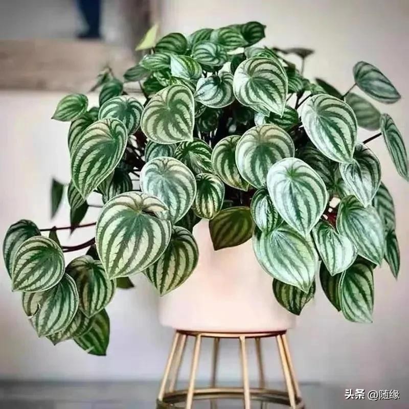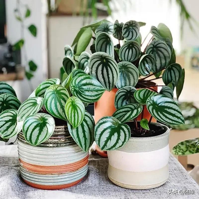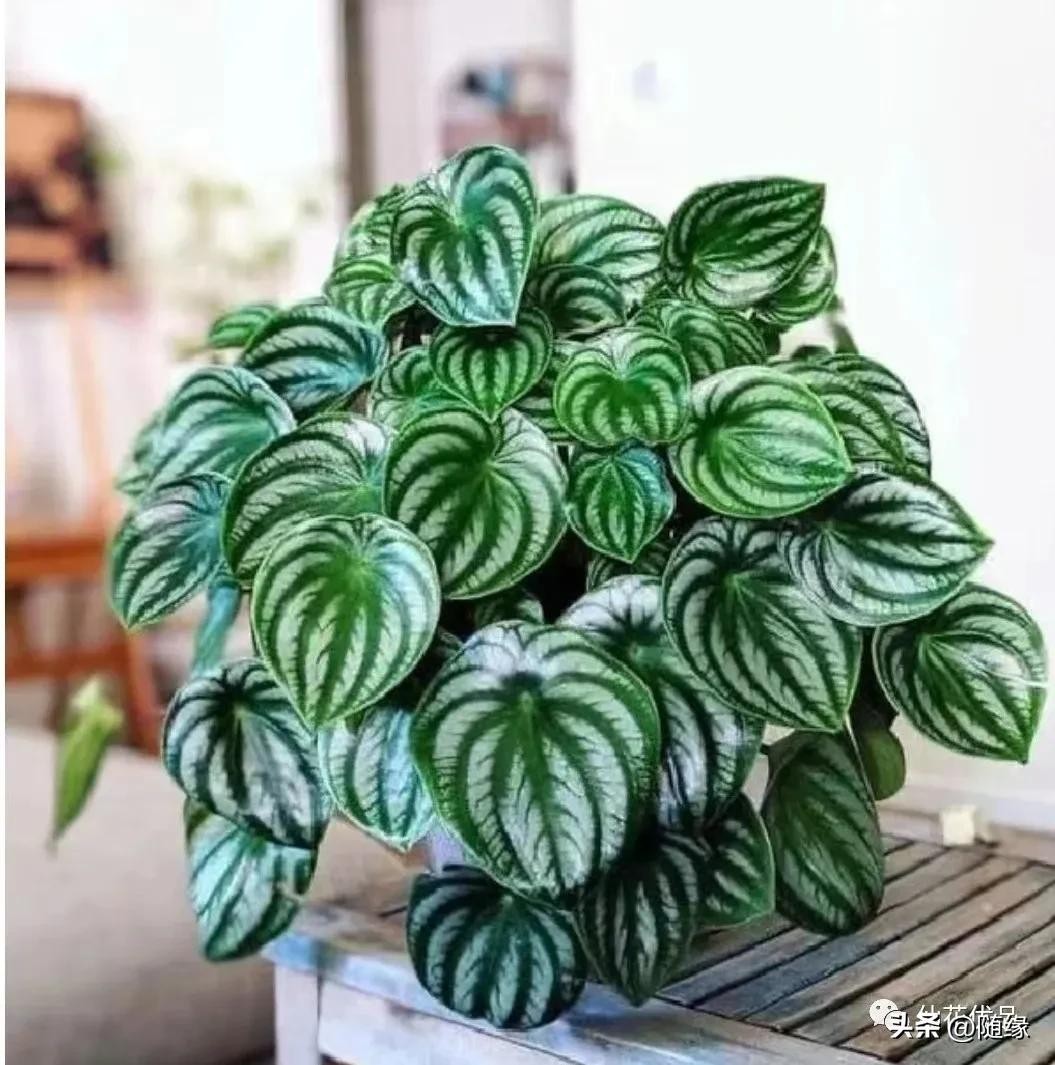 西瓜皮椒草,株形玲珑,秀叶丛生,形态圆润,绿如翡翠,白若美玉,椎洁娇莹。西瓜皮椒草,宽脉明显,八条均分,浅地深脉,富有光泽,状若西瓜。西瓜皮椒草的花语是:吉祥如意!