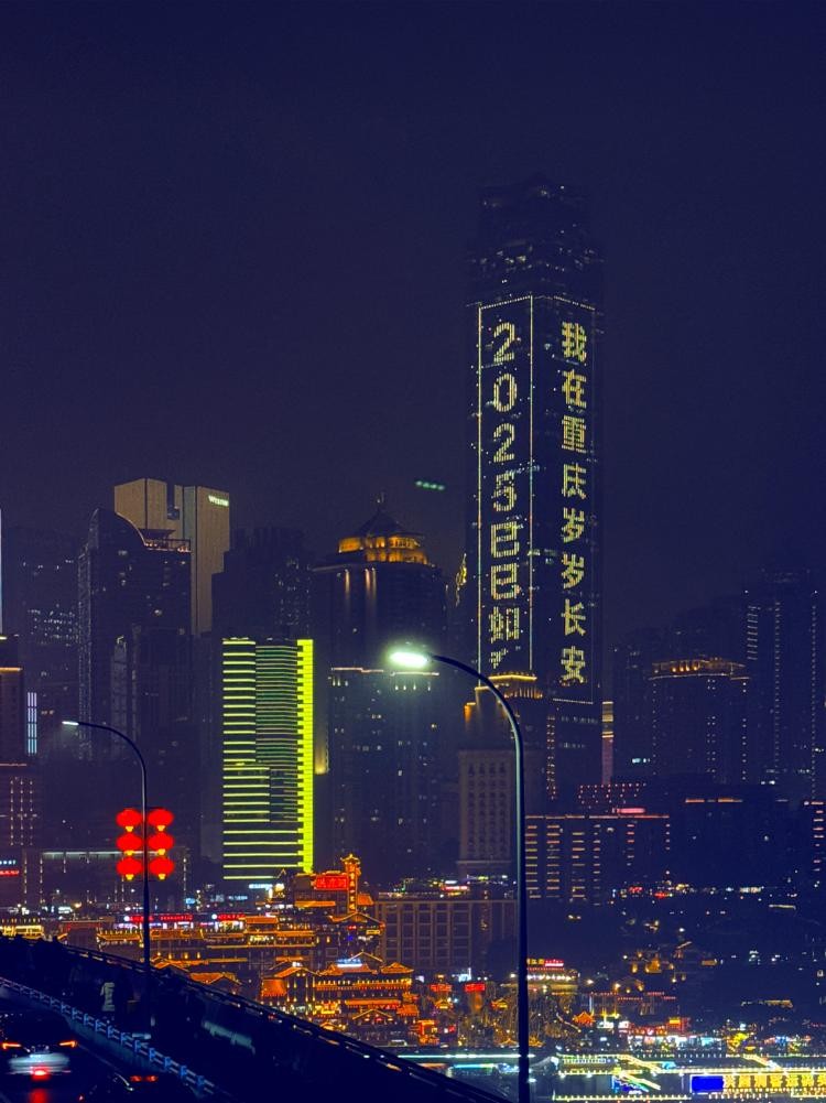 “多喜乐,长安宁” 重庆夜景中的巨幅“春联”你get没