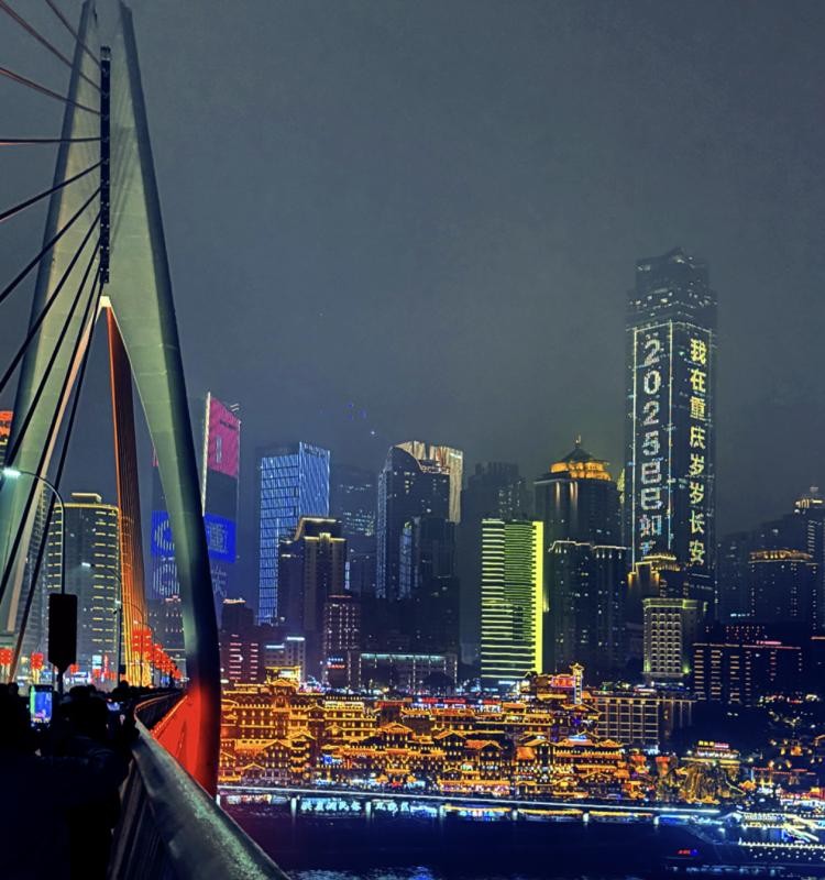 “巳巳如意 岁岁长安”“龙蛇启新 一路长安”“风生水起 一路长安”每到夜晚,无论你在江北、解放碑还是南岸,都能看到WFC化身的巨幅“春联”闪耀夜空,祝福着人们的生活长乐常安,祝福着归家团圆的人们一路平安。