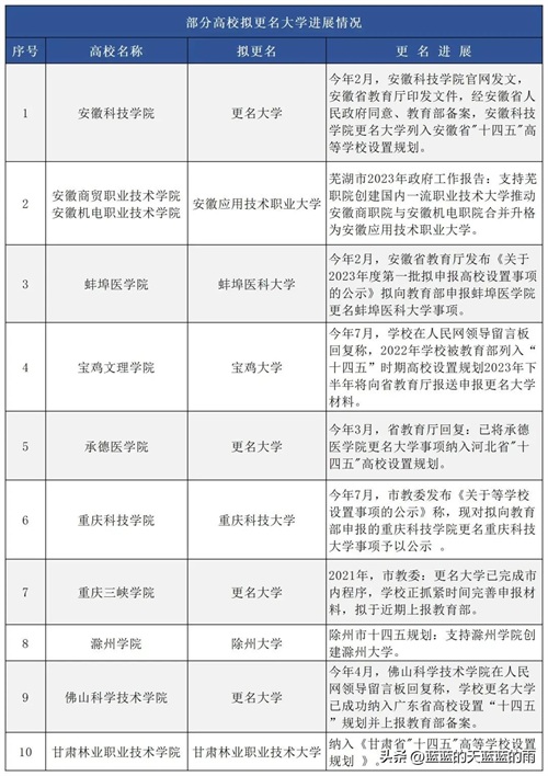 这10所院校成功更名为大学!附国内70所即将更名的高校名单!