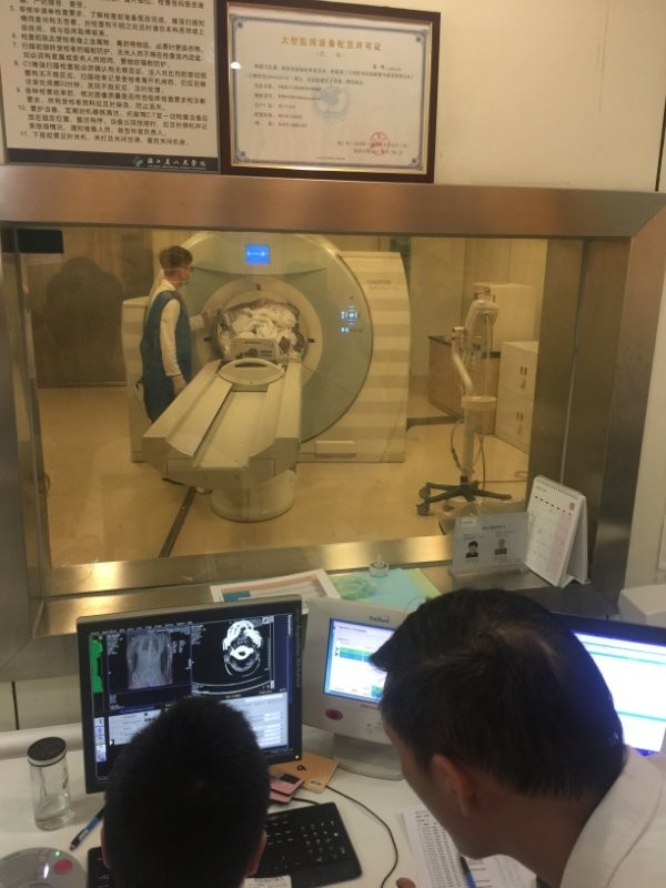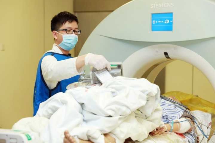 郑伟说一般情况下医护人员可以透过显示仪器,在CT室外就可以了解到病人的情况,但是自己当时一是想抓紧时间,二是因为他注意到伤者因为身上的伤而出现了有点烦躁的状态,就跟进了CT室。