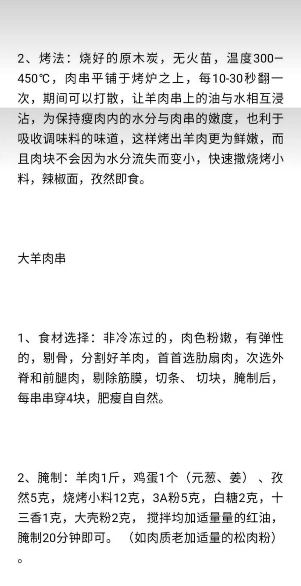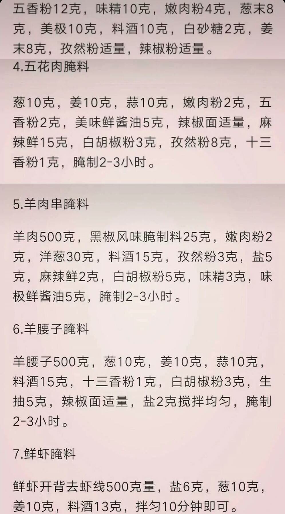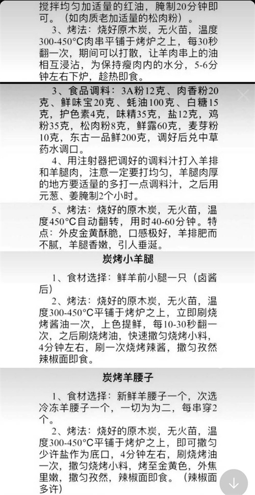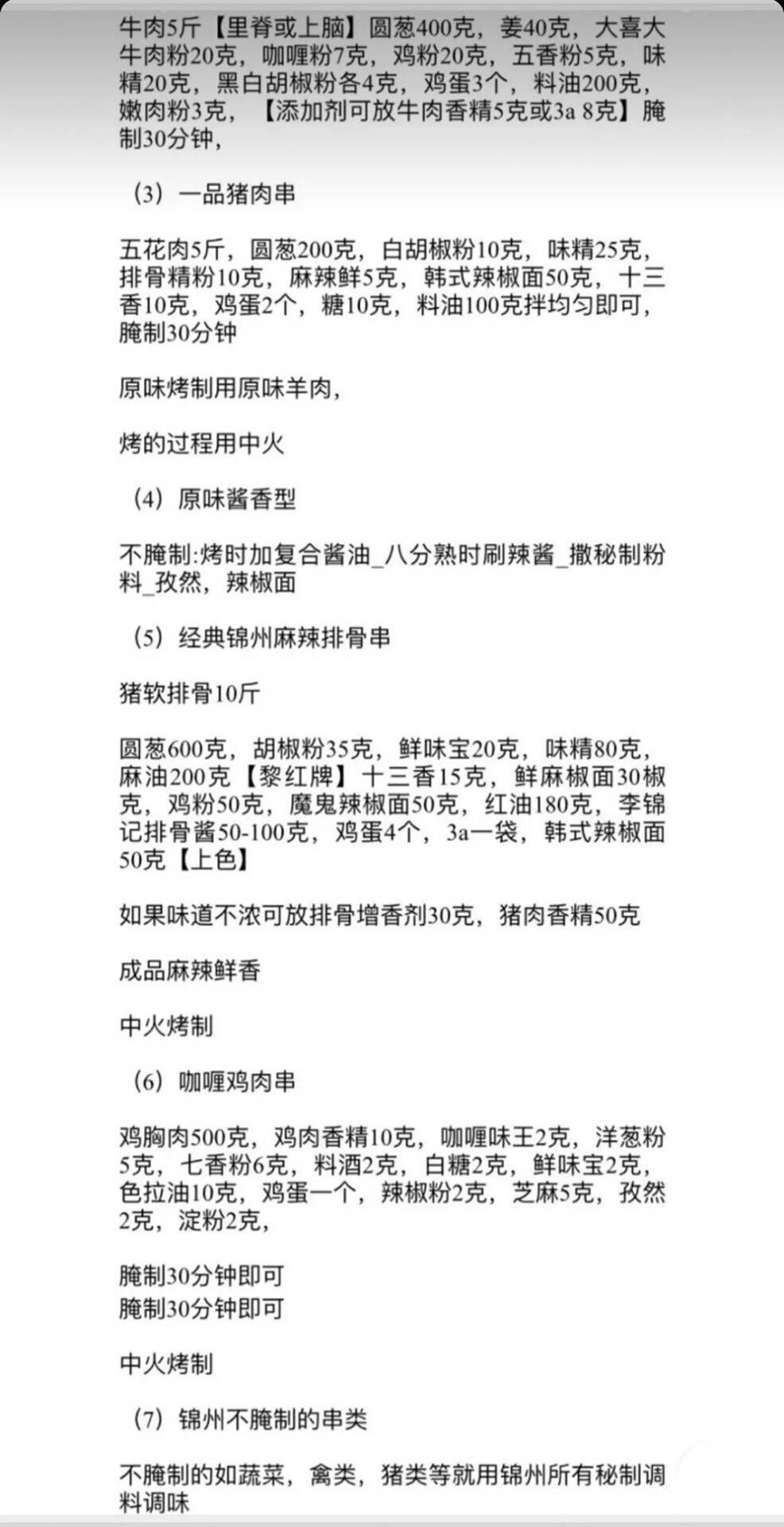 今天给大家分享的是非常多的烧烤的技术,因为夏天要到了嘛,想着大家在夏天的时候呢肯定会找一些烧烤的技术像锡纸类的呀,烤羊肉串儿啊,大肉串儿啊,烤羊腿,羊排呀,像这些技术大家肯定会去找,今天把这些技术免费的给大家分享出来。这些配方的味道呢都是很不错的,都是实体店实战的技术。