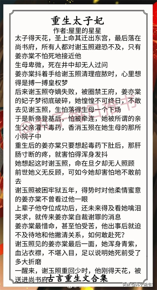 5.《重生太子妃》作者:屋里的星星(怂包美人vs疯批太子,双重生,弥补遗憾,古言甜宠文)