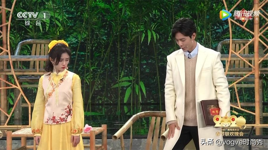 鞠婧祎穿黄裙登上春晚舞台,肖战站在她身边,结果全场被美哭了