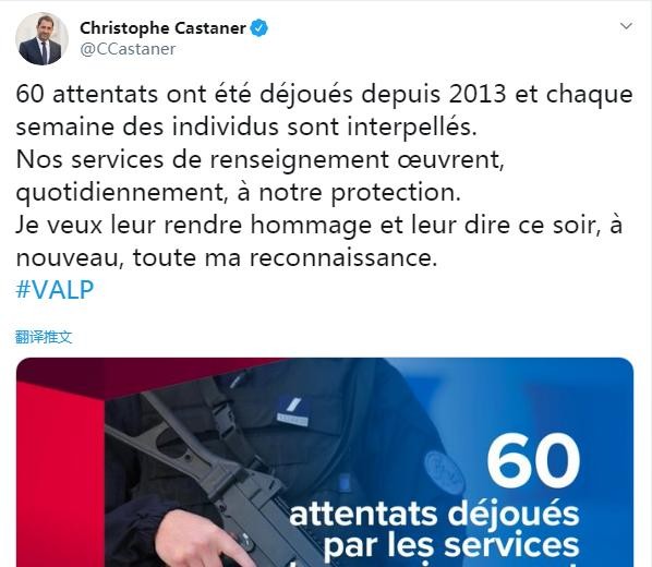 法国内政部长是在讨论10月3日在巴黎警察总部发生的持刀袭击事件时透露了这一消息。他指出,这是法国政府自2013年以来挫败的60起恐怖袭击阴谋之一。