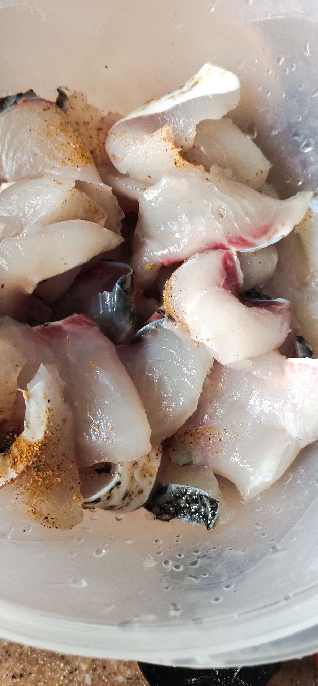 1.花 鲢鱼片,商家已帮切好了,清洗干净后,放一小勺耗油.一小勺料酒腌制10分钟。
