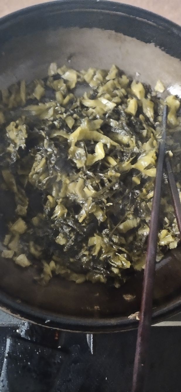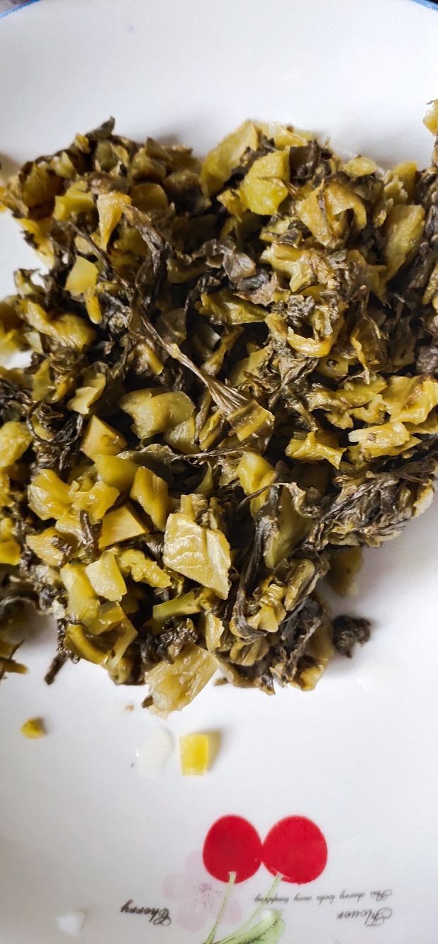 5.自已腌制的咸菜切碎后,洗干净备用。