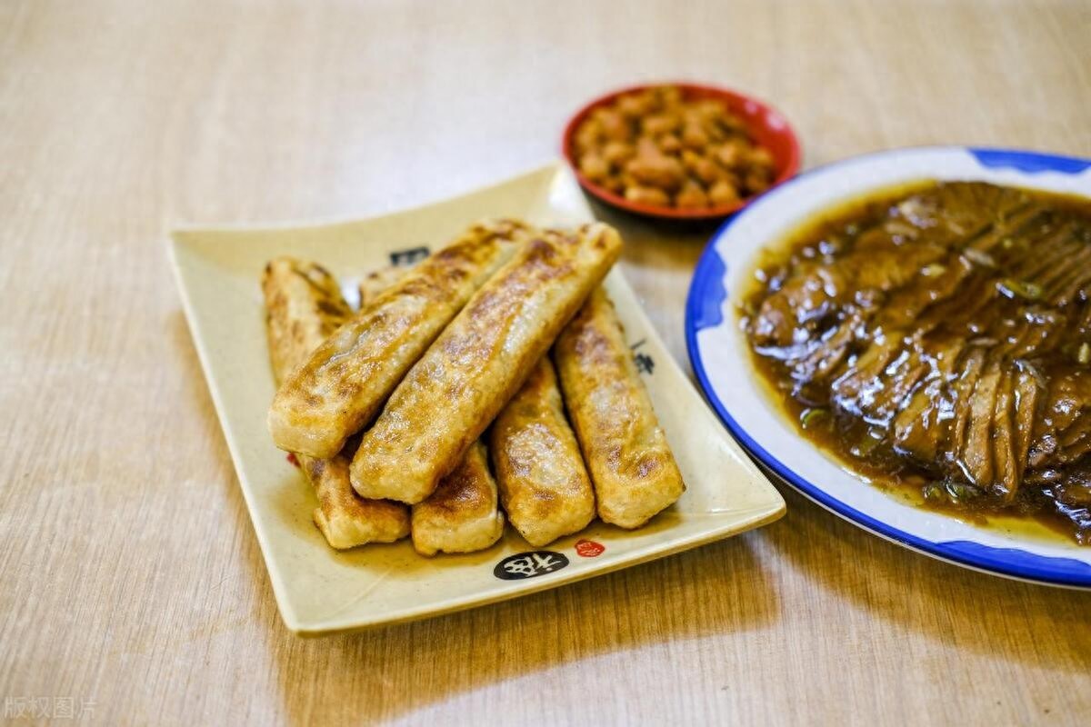 一般呈长方形,大小比手掌略大,外皮擀得薄而均匀,经过煎制或烙制后,外皮呈现出诱人的金黄色,色泽油亮。