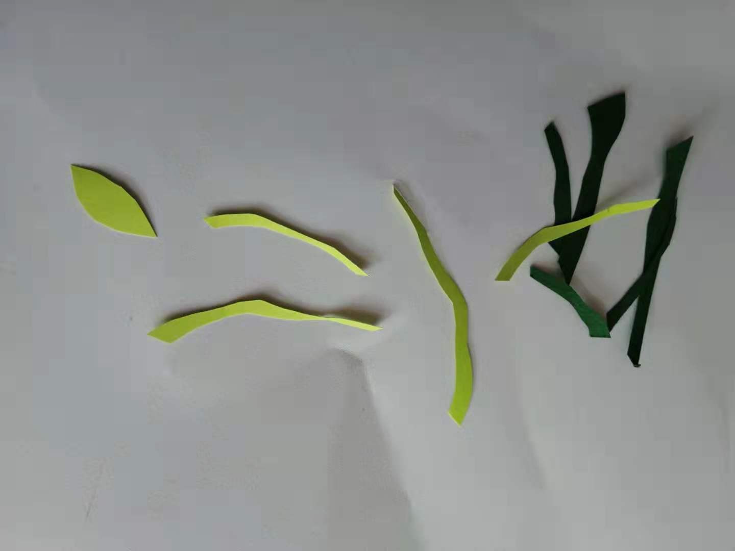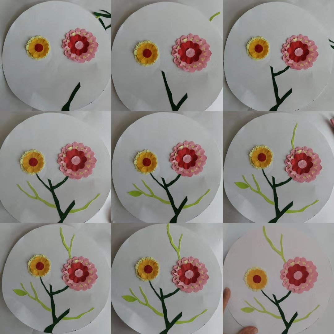 贴好花朵之后再用绿色卡纸剪些花朵的枝条和叶子。