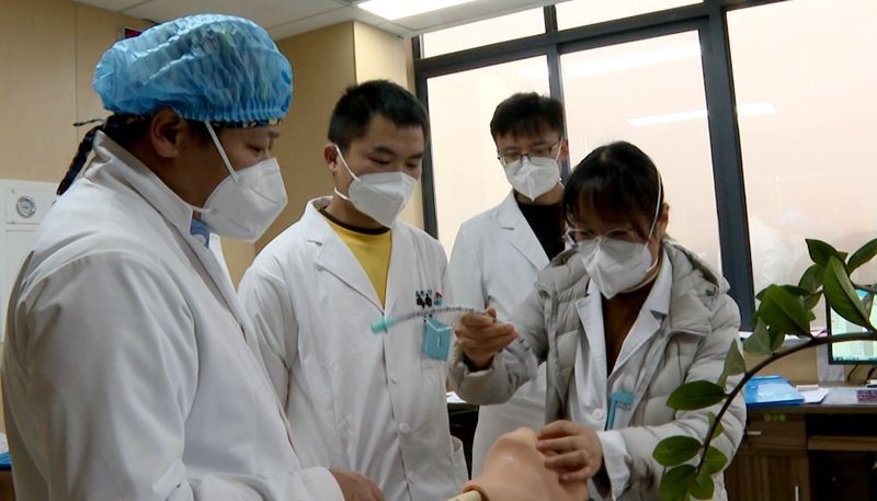 走进科室,主任胡长蓉正在给患者会诊。她说,在全科医护人员基本上全部感染的情况下,现在呼吸与危重症医学科的工作量是平时的两到三倍。每天基本上是处于出院多少病人就要马上入住多少病人,从2022年12月中下旬开始到现在,科室总共收治了120多例患者,现已出院了56例。