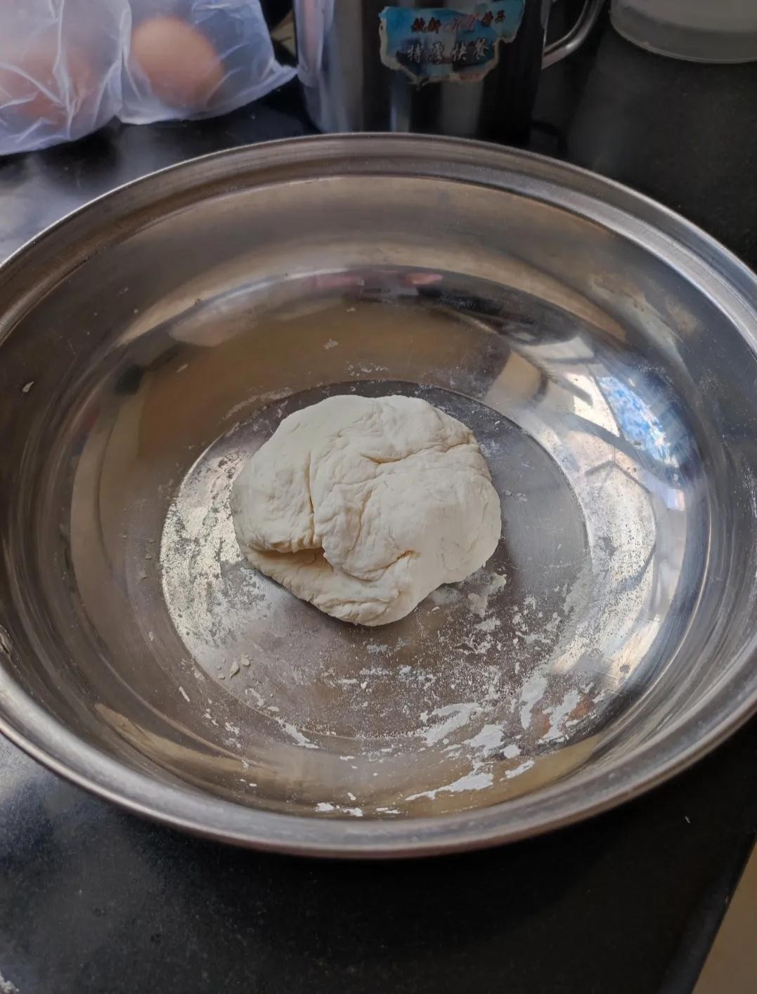 案板上洒些面粉,把面团揉成一个光滑的面团,再盖上保鲜膜,等待30分钟。