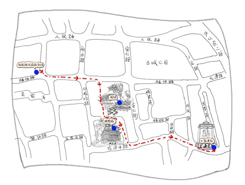 游览路线:福佑路小商品市场—豫园—老城隍庙(豫园商城)—上海老街
