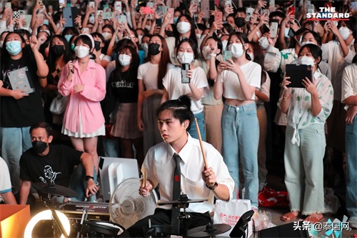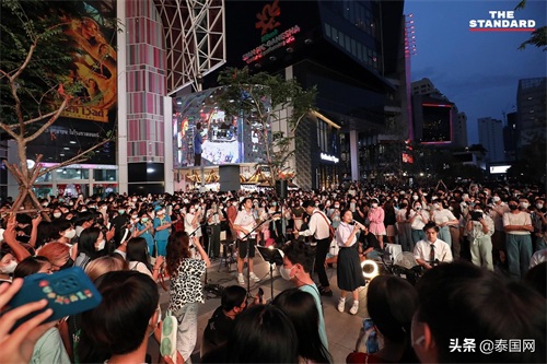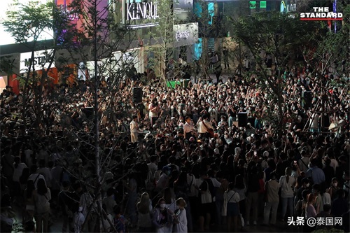 6月11日傍晚,泰国大量年轻人前往曼谷暹罗广场,欣赏由来自多所中学学生组成的乐队Yes Indeed Band的表演,大家分散或坐或站在小舞台周围,自在惬意。当天,泰国知名歌手Chalatit Tantiwut也加入其中,参加表演。
