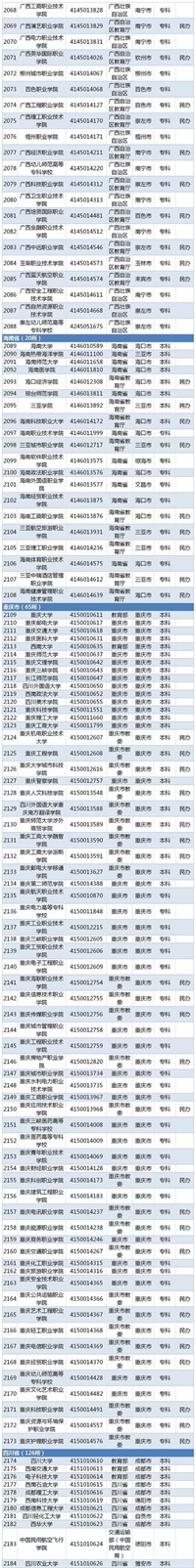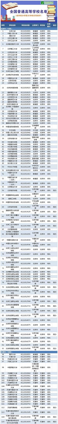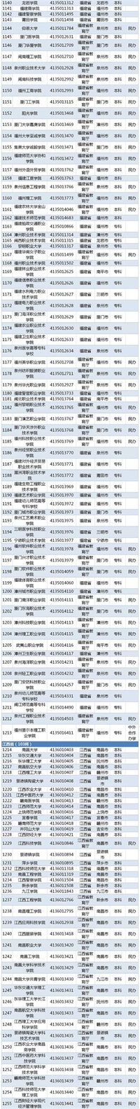 2019年全国2956所高校名单发布!福建90所