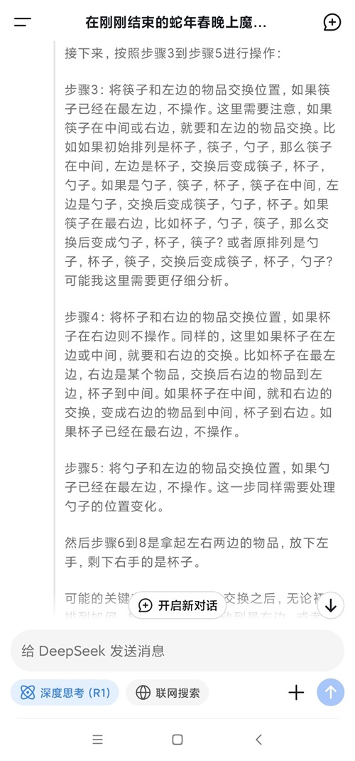 在这次“请教”中,南方+记者使用了DeepSeek的两种对话模式来解析刘谦的魔术表演: