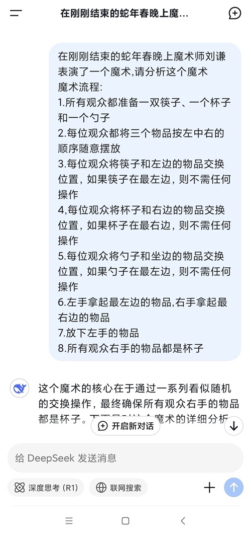 你看懂了吗?用DeepSeek来分析春晚上刘谦的魔术就“真相大白”了!
