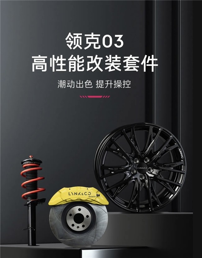 领克03官方改装套件的发布,无疑为车友们提供了一个展现个性和追求极致性能的舞台。如果你也心动了,那就赶快行动吧!领克商场中提供了丰富的改装选项,你可以根据自己的需求自由选择高性能减震器、改装轮毂、前轮四活塞卡钳等套件,打造出专属于你的独特座驾!