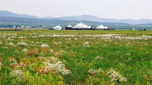 近期雨水颇多,敕勒川草原的天然牧草长势渐好,花朵盛开。在这里,你可以看到一望无际的草原,绿荫如毯的草场上,散落着如珍珠般的蒙古包,更有伸向远方的草原彩路,独特的草原气息扑面而来。