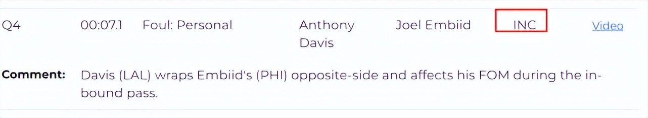 第二次漏判出现在距离第四节结束还有7.1秒,浓眉关键抢断前已经犯规。裁判报告指出在76人发球时,浓眉抱住了恩比德,影响了他的接球。这一次漏判导致浓眉抢断成功,湖人获利,76人吃亏。浓眉随后造成对方犯规,两罚一中,比赛进入加时。那次犯规本该是浓眉的第六次犯规,他逃过了犯满离场。