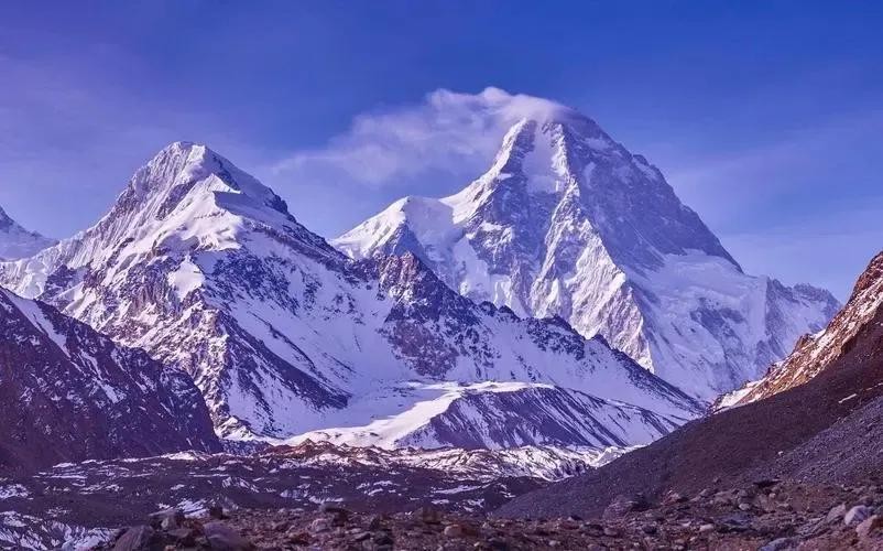 乔戈里峰,在新疆西南边陲喀喇昆仑山中段中巴界上。海拔8611m,为世界第二高峰。