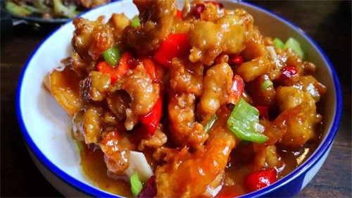 鸡里蹦是一道色香味俱全的地方名菜,属于冀菜系。此菜以白洋淀特产大青虾及家养雏鸡为主料,保定厨师在清前期大胆出新,两鲜并举,甜咸醇香、营养丰富。