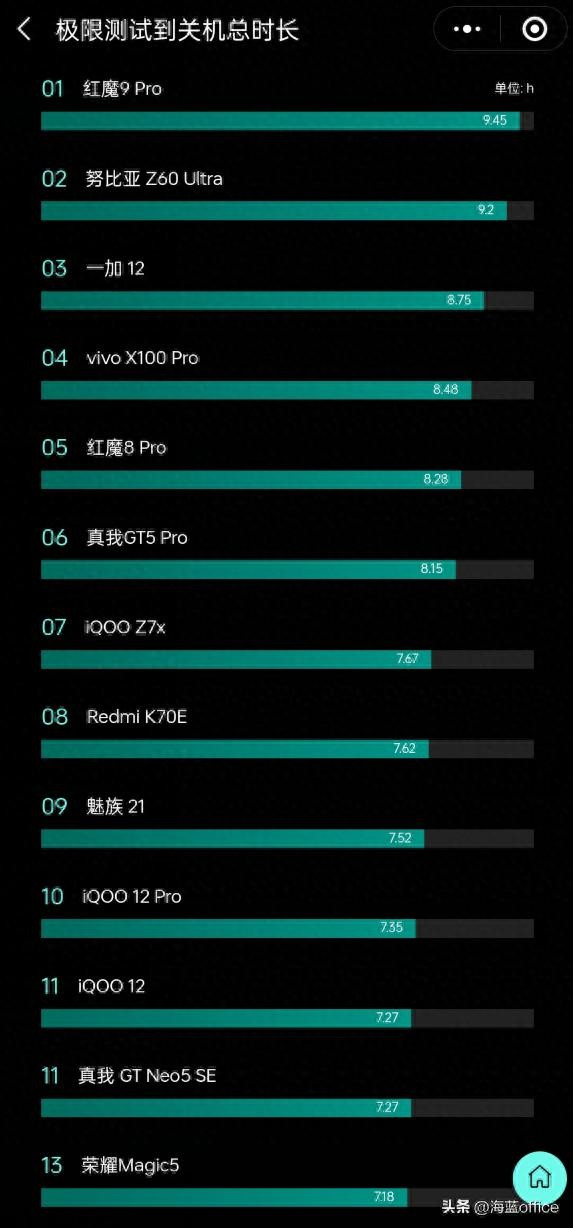 可以看到,许多一线品牌的手机并未上榜,并不是手机越贵,续航时间就会越长,也并非电池容量越大,续航时也会越长。