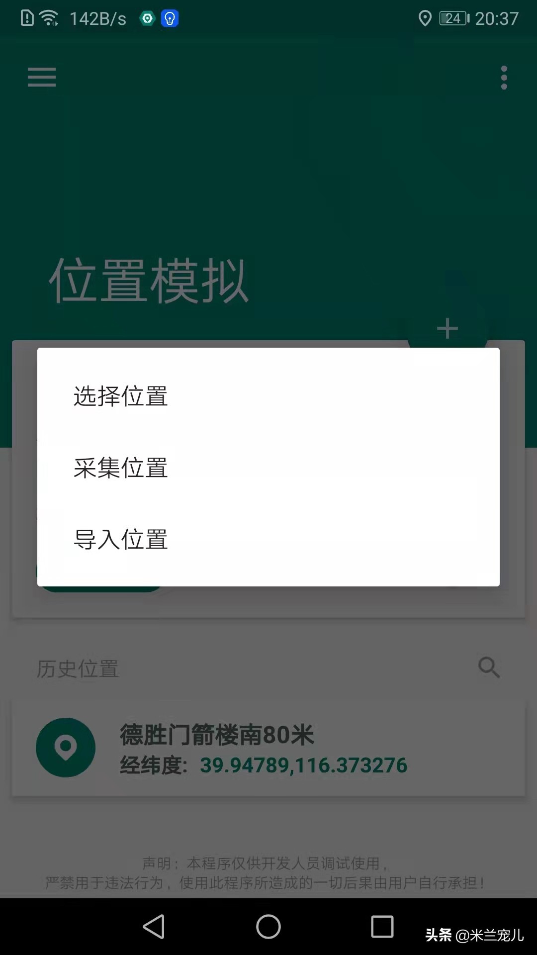 2、选择位置模拟,如果不是需要从左上角的设置里面选择位置模拟