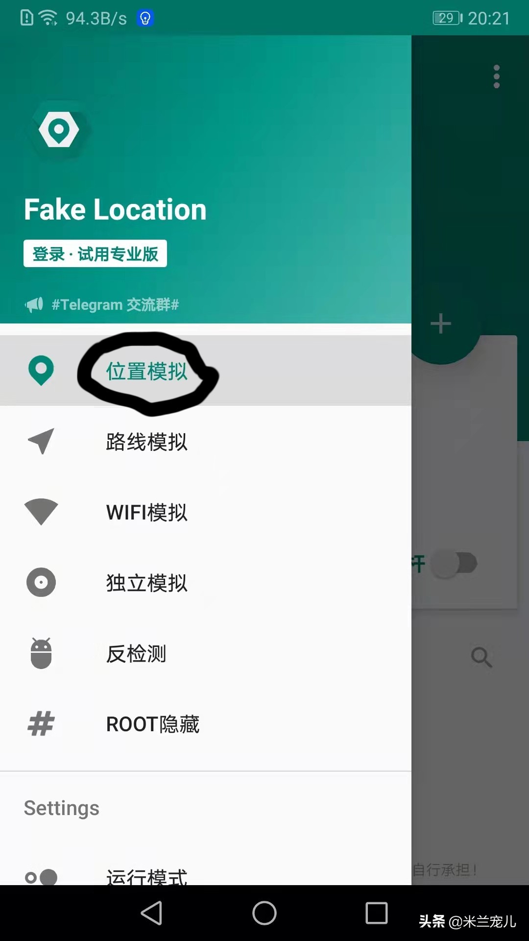免root模式需要到开发者选项中找到选择模拟位置信息应用。