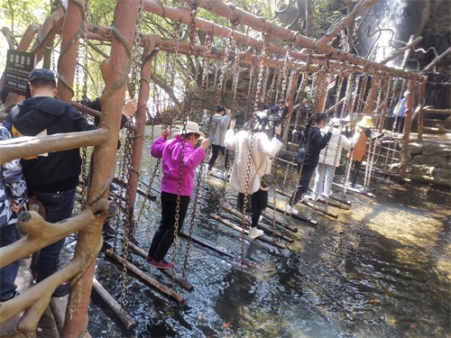整个景区最好玩的要数水上过桥了,很多人在此找到了欢乐,不过也有不少人在此弄湿了鞋。