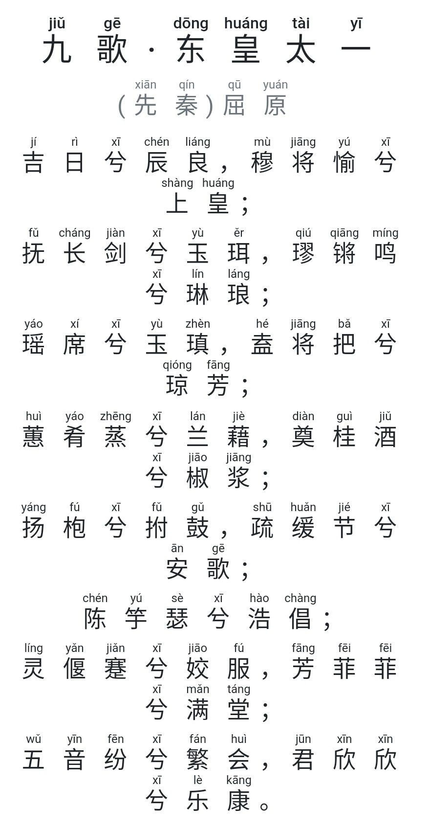 【九歌·东皇太一】原文、译文整理(拼音版)